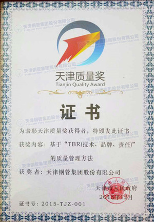 天津鋼管公司榮獲首屆天津質(zhì)量獎(jiǎng)