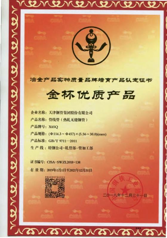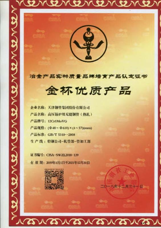 高壓鍋爐用無縫鋼管獲冶金產(chǎn)品實(shí)物質(zhì)量金杯獎(jiǎng)